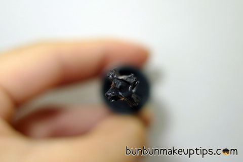 Now I don’t know whether this is a good or bad thing. A flexible mascara wand is great if you want a lot of volume for eyelashes as it can easily bend from root to end. But being the clumsy and impatient person that I am, I have bent the joint between the wand and brush until the wand is slightly crooked. I don’t look at the process of putting the mascara wand back into the tube while applying makeup, looking away the moment the brush head is in contact with the entrance of the tube. This is what I do with other mascaras, but the brush of the Rimmel Glam Eyes Mascara is soooooo rubbery that if I do it the regular way and assume that the wand will go STRAIGHT in to the tube, I will somehow bend the wand. But its deformity doesn’t bother me, especially since it was caused by me. HOHO.