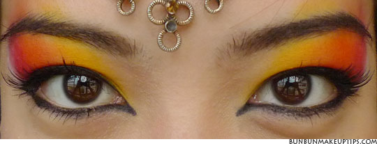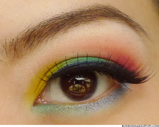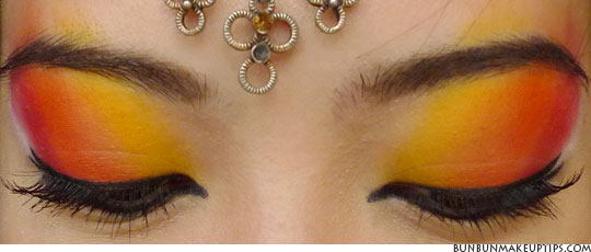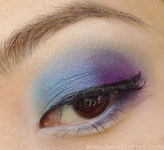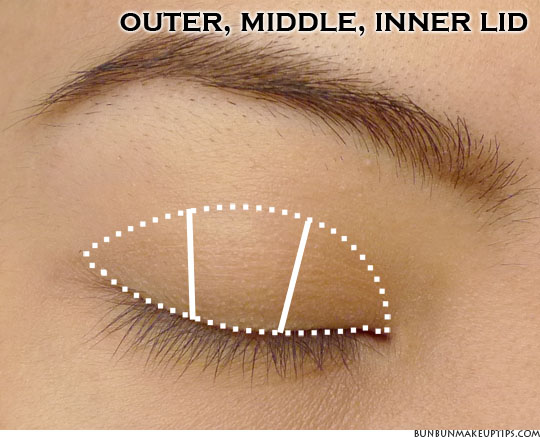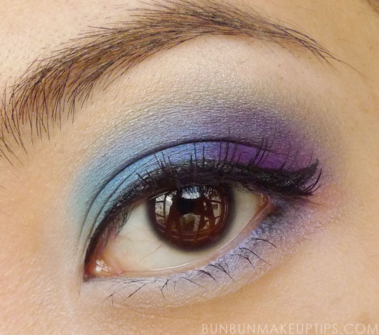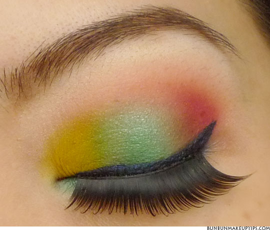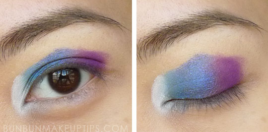 Bun Bun's Makeup Tip: The trick to making each color blend seamlessly into the next so that there isn't any obvious start and end to each 'block' is to use a brush with firm but soft-to-the-skin bristles to merge side-by-side colors together (I recommend MAC 239, elf Eyeshadow Brush).
