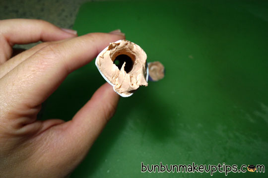 Many videos and blogs suggest that you saw through the hard plastic tube with a serrated knife, bread knife, paring knife, jig-saw (!!!). But the idea of sawing a plastic tube just didn’t sit very well with me. Besides, I’ve read complaints about people suffering from eye infection due to tiny plastic shavings that got mixed into the product from all that sawing. You don't want shavings in your makeup products!!!