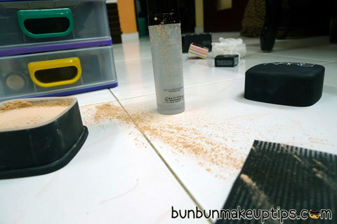 See! This happened a couple of months ago. I was just going to put the container back after taking some pictures of my cosmetics collection when it just slipped from my hand and landed on the floor. And it wasn’t even the first time I spilled this product. The loose cover is just not good for clumsy, accident-prone people like myself. Bah!
