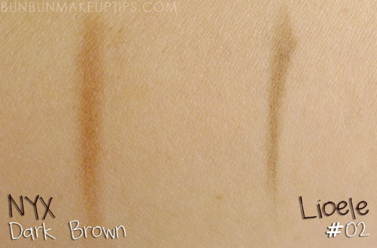 And here's a comparison of the Lioele Dark Brown and NYX Dark Brown eyebrow pencils.