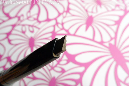 This is how the brand new pencil end looks like – edgily sharp. It may hurt a teeny tiny little when you use it for the first time, and takes a couple of uses before the edges are rounded and feel smooth during application.