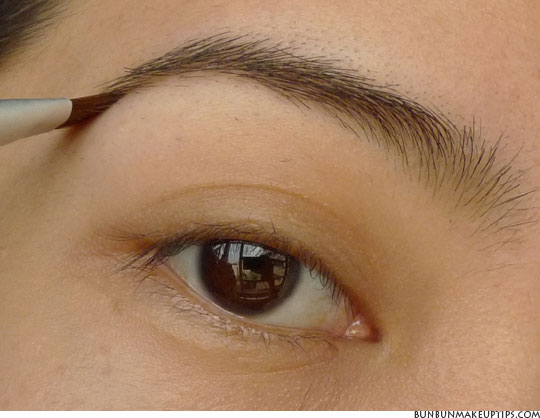 I use the lighter shade at the inner corner and the darker shade from two-thirds of the brow till the end.